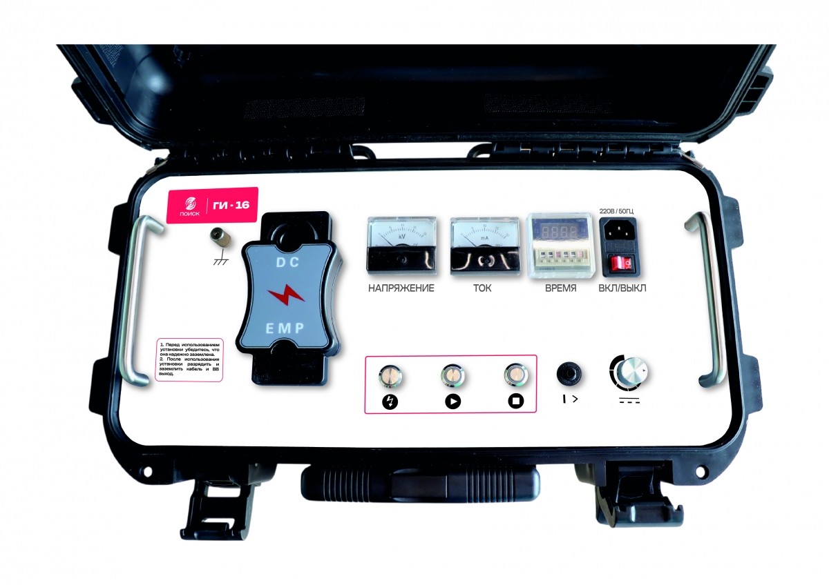 ПОИСК ГИ-16 с выходным напряжением до 16 кВ в сочетании с конденсаторами повышенной емкости (8 мкФ) позволит выдать высокую энергию импульса (до 900 Дж) даже на невысоких напряжениях, что позволяет быстро и точно находить различные виды повреждений кабелей низкого и среднего напряжения (0,4 - 10 кВ) с различным типом изоляции.